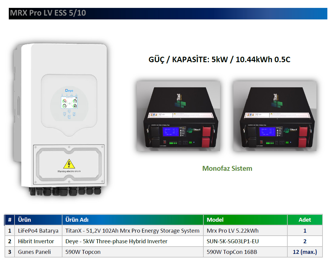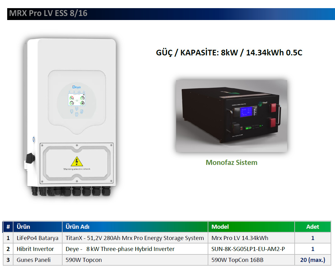 • 3 fazdan asimetrik güç çıkışı, her fazdan nominal gücün %50’sine kadar maximum güç • Maksimum 700A şarj/deşarj akımı • Akü şarj/deşarj için 6 zaman periyodu • Dizel jeneratör ile entegre çalışma, jeneratörden enerji depolama desteği • Ekstra uzun ömür, 8000 döngü • Uzaktan bağlantı ve kurulum desteği • Mobil uygulama ile uzaktan takip ve kontrol